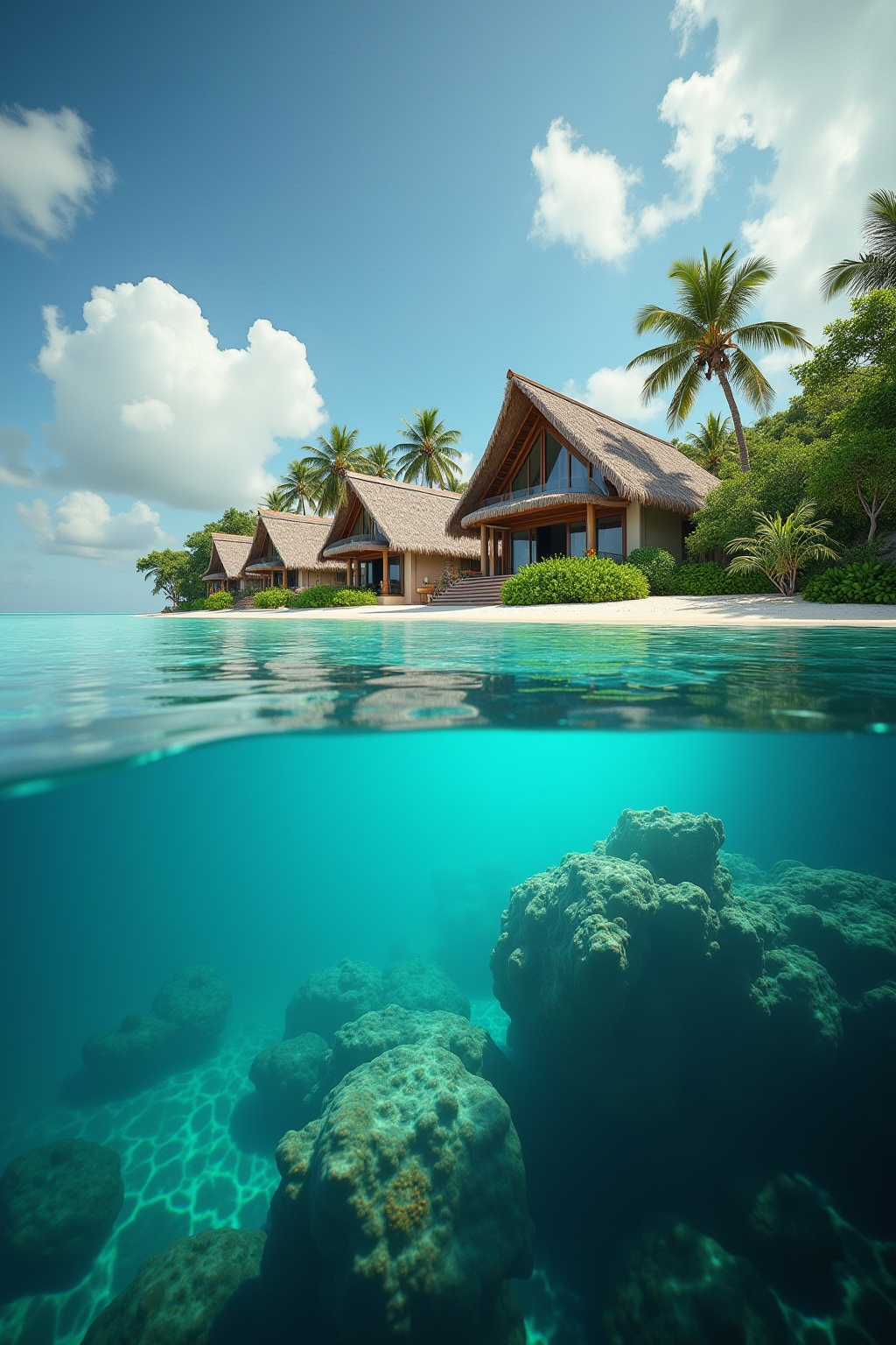 Unterkünfte: Von luxuriösen 5-Sterne-Resorts bis zu gemütlichen Gästehäusern auf lokalen Inseln, Preise ab 100€ pro Nacht für Gästehäuser und ab 250€ für Resort-Unterkünfte.