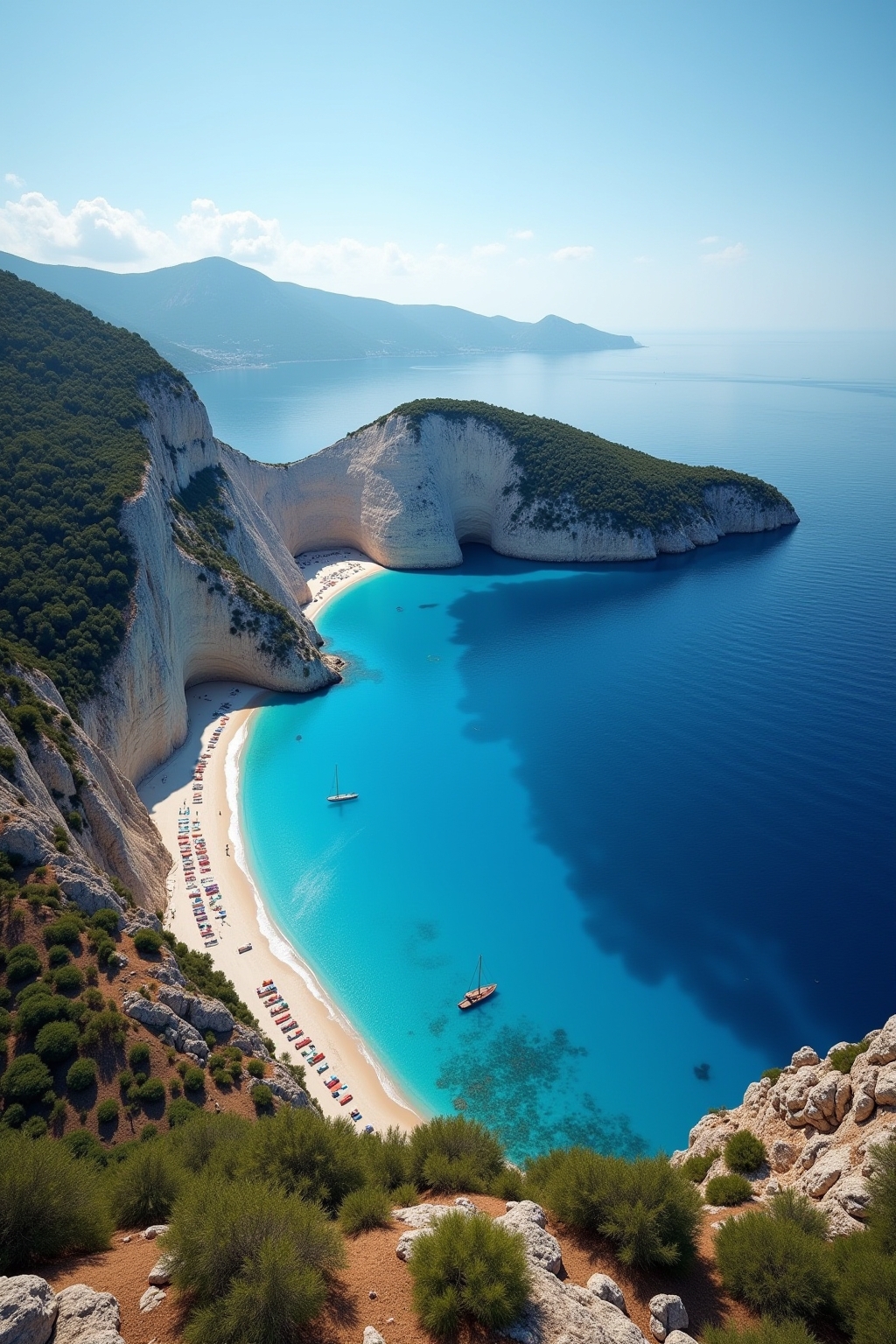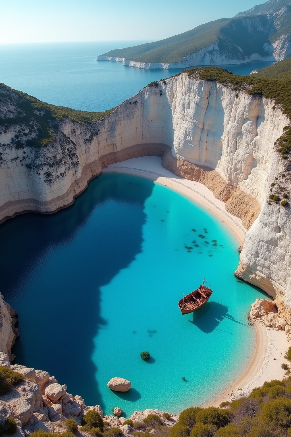 Die griechische Insel Zakynthos verzaubert Besucher mit einer beeindruckenden Vielfalt an atemberaubenden Sehenswürdigkeiten, die von türkisblauem Meer umgeben sind. An erster Stelle steht zweifellos der weltberühmte Navagio Beach (Schiffswrackbucht) mit seinem gestranden Schiff auf weißem Sand, umrahmt von imposanten Kalksteinklippen. Nicht minder spektakulär präsentieren sich die Blauen Grotten im Norden der Insel, deren Wasser in magischen Blautönen schimmert und die bei einer Bootstour erkundet werden können. Der Marathonisi (Schildkröteninsel) und der Nationalpark von Zakynthos bieten Naturliebhabern die Möglichkeit, die geschützten Caretta-Caretta-Schildkröten in ihrem natürlichen Lebensraum zu beobachten.